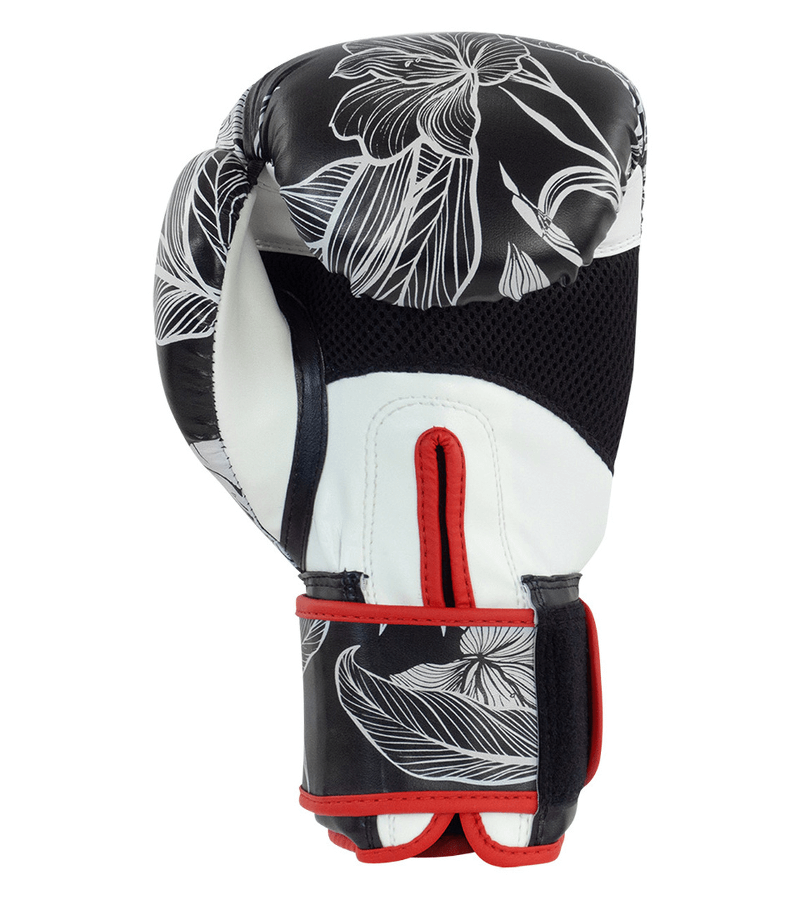 El flower power tiene un lado oscuro. Los guantes de boxeo Flower Power incorporan acolchado moldeado por inyección para una gran protección, una palma de malla para mantener los guantes con una sensación y un olor fresco, con una cubierta de cuero sintético de alta duración. Creado para atletas de todos los niveles de experiencia a un precio inigualable. Estos guantes de boxeo negros y rojos se pueden usar para boxeo, kickboxing, muay thai y otras formas de deportes de combate que requieren guantes de boxeo.