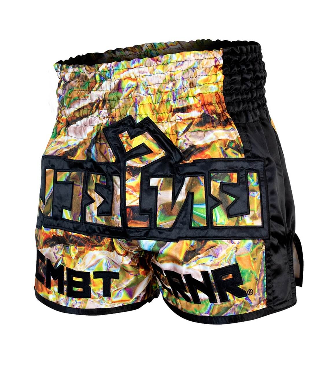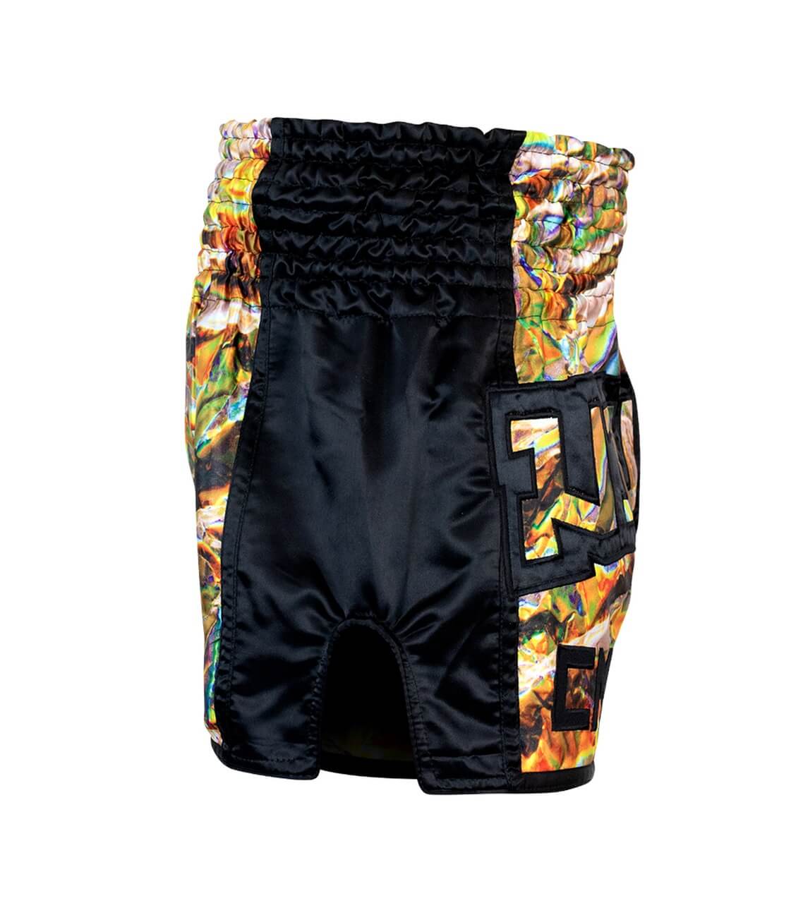 Shorts de muay thai de satén de primera calidad con un patrón sublimado sin igual y un aplique de gran tamaño bordado de «Muay Thai» en la parte delantera. Diferénciese del resto con unos shorts de Muay Thai únicos en el mercado.