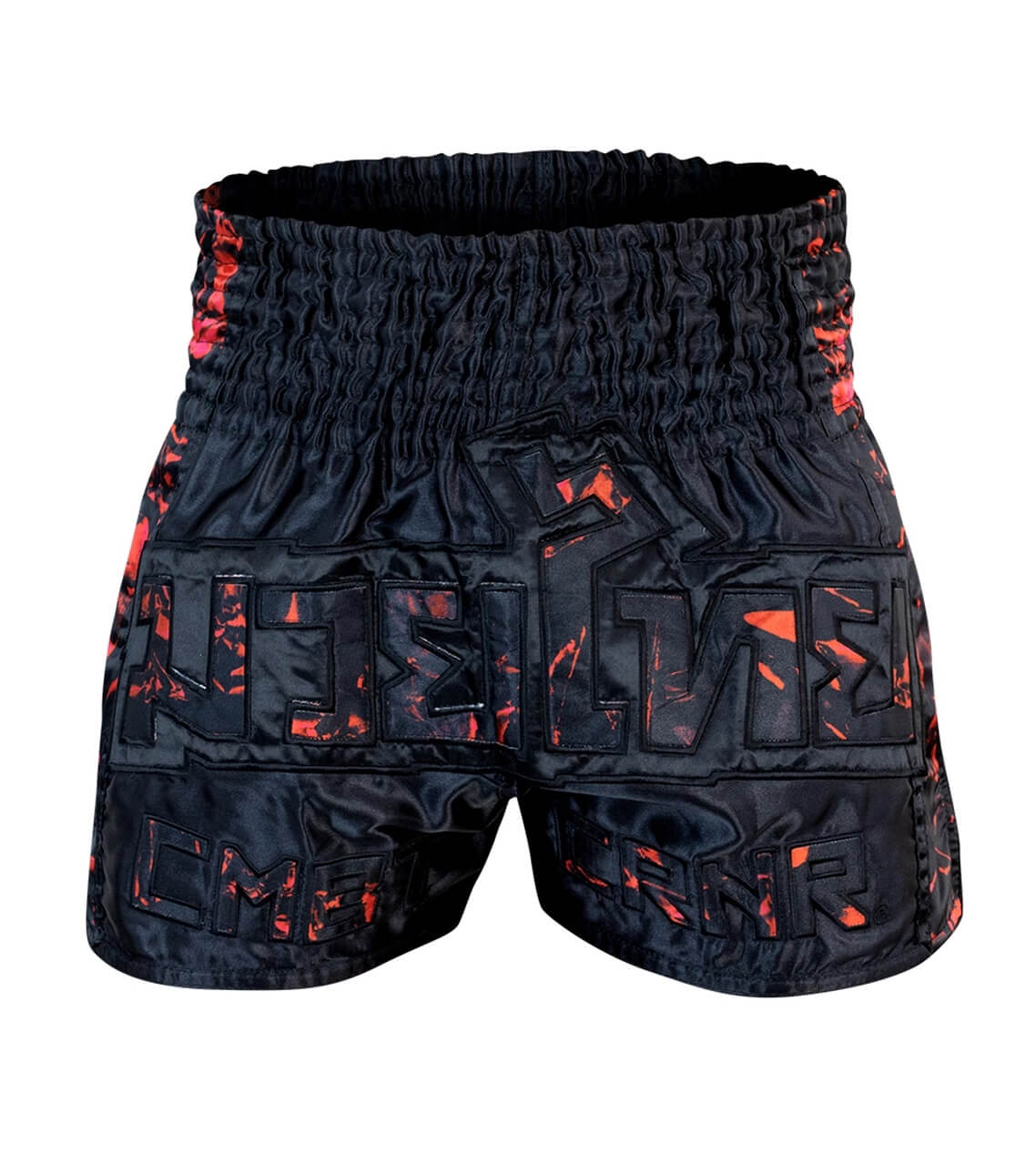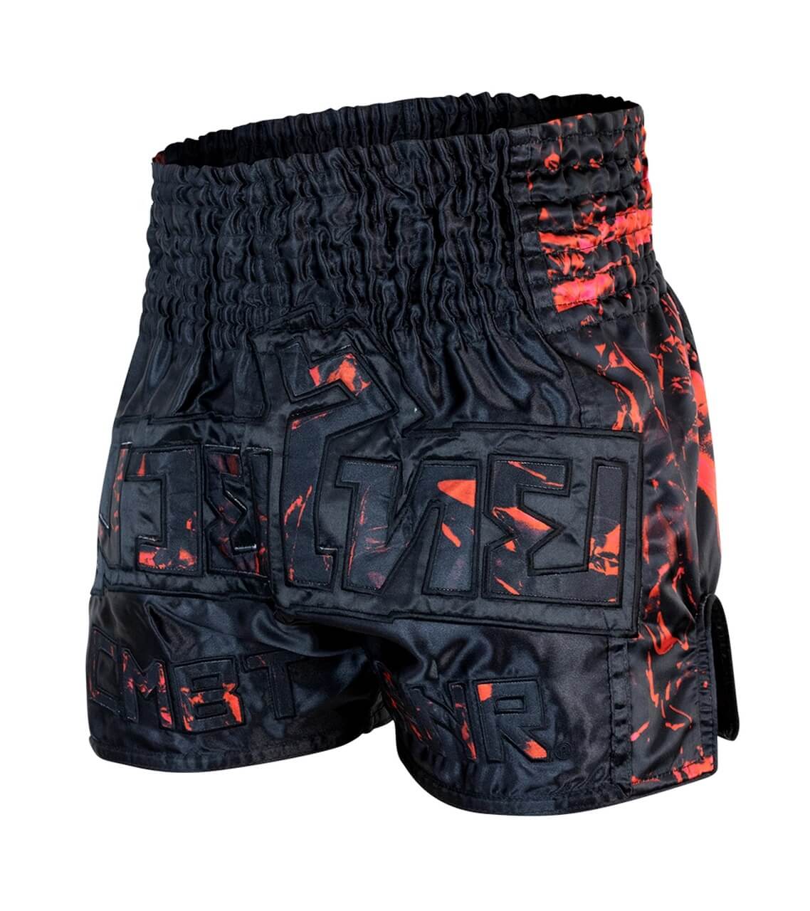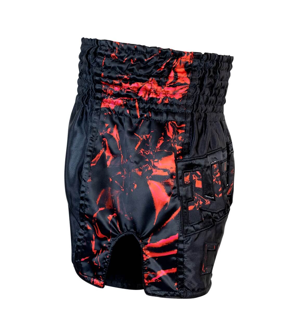 Shorts de muay thai de satén de primera calidad con un patrón sublimado sin igual y un aplique de gran tamaño bordado de “Muay Thai” en la parte delantera. Diferénciese del resto con unos shorts de Muay Thai únicos en el mercado.